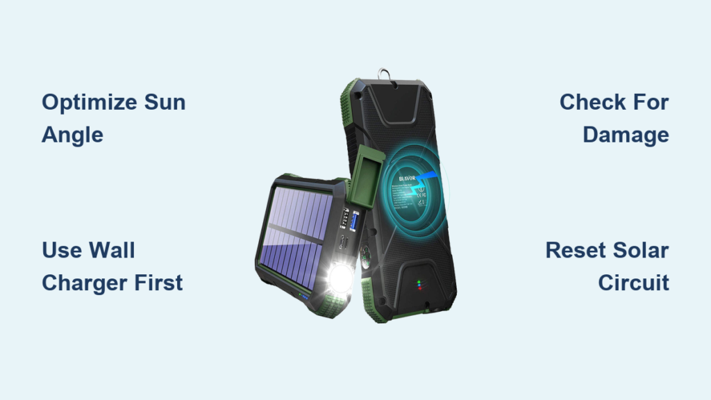 Your Blavor solar power bank sits useless on your camping trip because it won’t charge, leaving you stranded without power