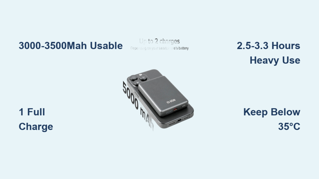 While manufacturers advertise 5000mAh capacity, real-world performance typically delivers only 3000-3500mAh to your device due to energy conversion losses. For most modern smartphones with 3000-4000mAh batteries, this means you’ll get approximately one full charge plus a bit extra—perfect for daily emergencies but not for extended trips.