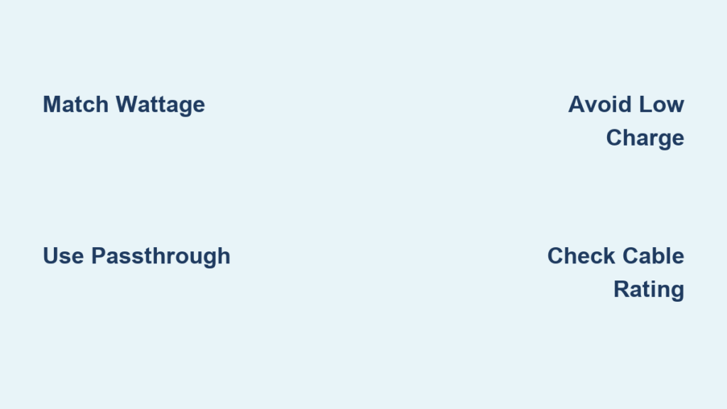 Critical mistake to avoid: Using a power bank rated below your laptop’s needs. A 30W bank on a 65W ThinkPad causes persistent “plugged in, not charging” errors and forces battery drain during use—defeating the purpose entirely.