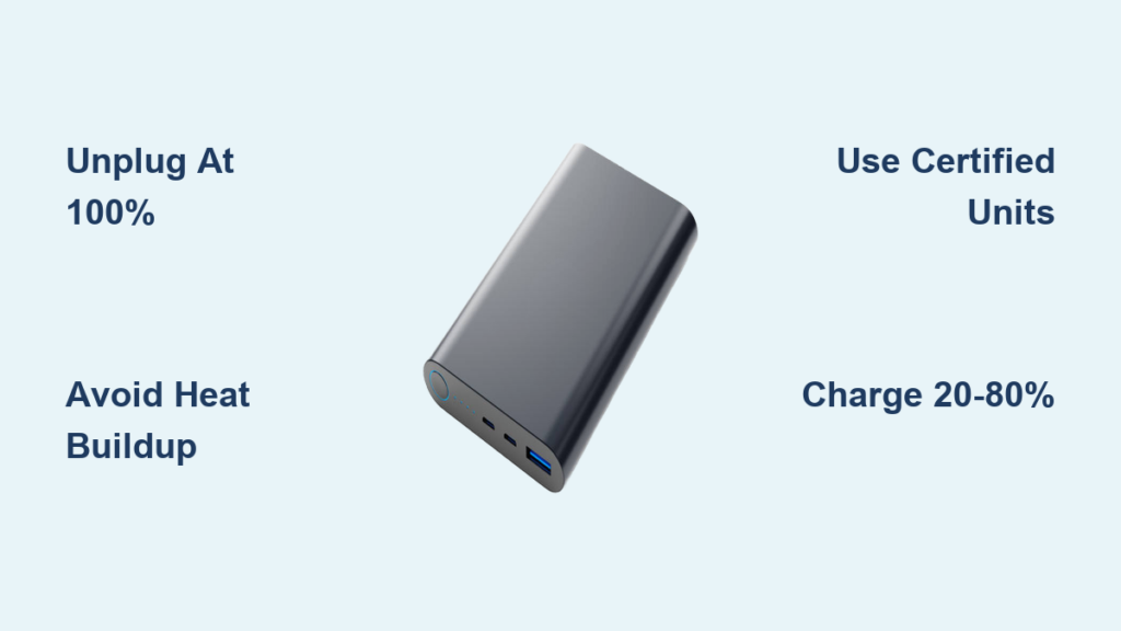The single most effective safety upgrade? Charge your power bank while awake and unplug it at 100%. This eliminates micro-charging cycles and heat buildup. Most quality units fully charge in 4-6 hours—plug in during dinner and unplug before bed.