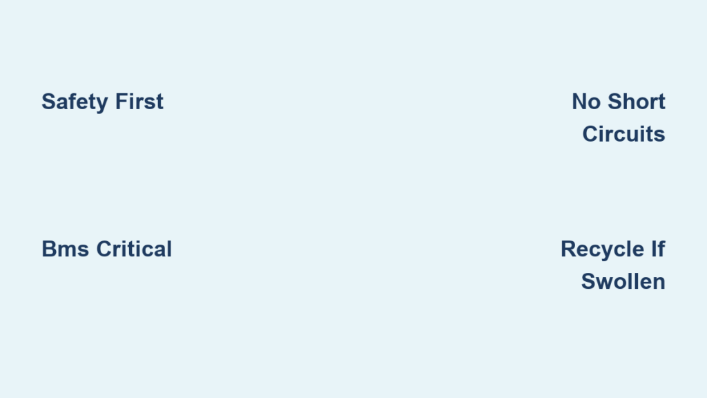 • Cell Damage = Fire Risk: Puncturing a single 18650 cell releases flammable electrolytes that ignite on contact with air. Swollen cells indicate internal failure—stop immediately if you see this.